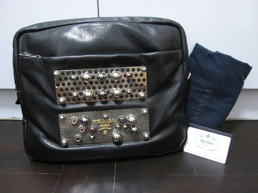 (ITEM SOLD) PRADA LEATHER FOLDER CLUTCH WITH STUDS Condition: Used, in mint condition Colour: Black + Hardware Measures: 32 x 27 x 5cm Retail: $2150 Selling: $600 (Selling Cheap!)